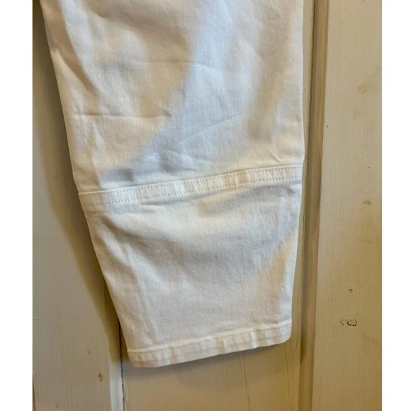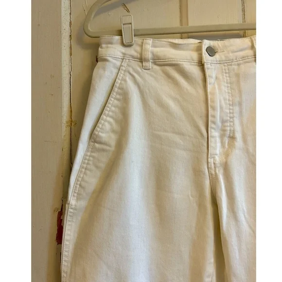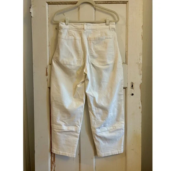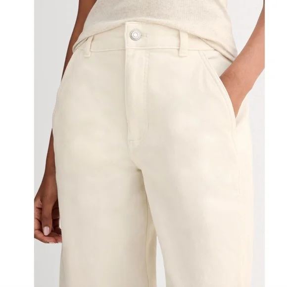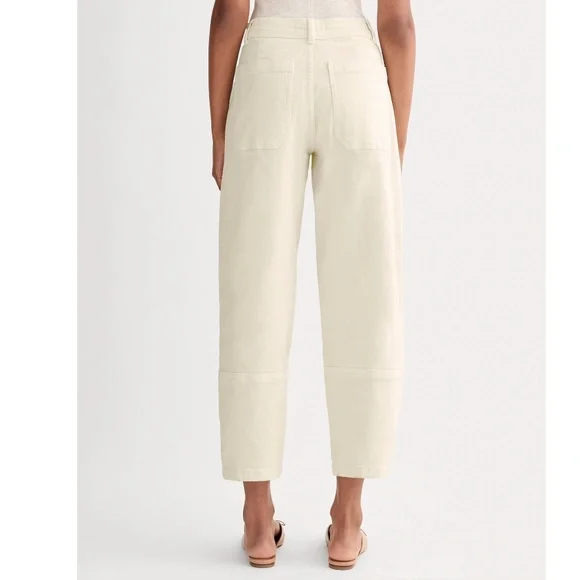 EVERLANE The Utility Barrel Pant white - 6“The pant that ends other pants.”Tik-Tok famous, even better IRL, hundreds of thousands of people love this waist-nipping, figure-flattering pant. The Utility Barrel Pant really is that good. Made of lightweight cotton twill with just a touch of stretch, it features a high rise to hold you in, and that main-character-energy curved leg in an easy cropped length. Cool utilitarian paneling and butt-boosting patch pockets give you legs for days without all the hours of Pilates. Consider these your ultimate antidote to living in jeans. High-rise, Slim fit through hips. Relaxed barrel leg. Tapered and cropped at ankle. This item is pre-owned and in good used condition - See pics for details.-Brand: EVERLANE-Size: 6-Material: 98% Organic Cotton, 2% Elastane-Color: White-Waist: 14 1/2” (Flat)-Inseam: 25 1/2”