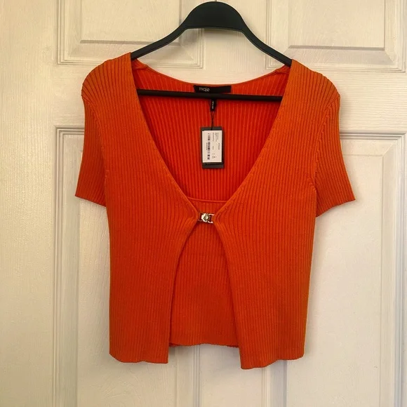 NWT- MINOR FLAWS SHOWN ON PICTURESFits true to size, order your normal sizeDesigned for a fitted silhouetteCardigan: collarless, clover clip closure at front, short sleeves, rib-knitTank top: round neck, pullover style, wide straps, rib-knitImported86% viscose/12% polyamide/2% elastane; rib: 86% viscose/12% polyamide/2% elastaneHand wash BYB 2