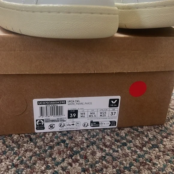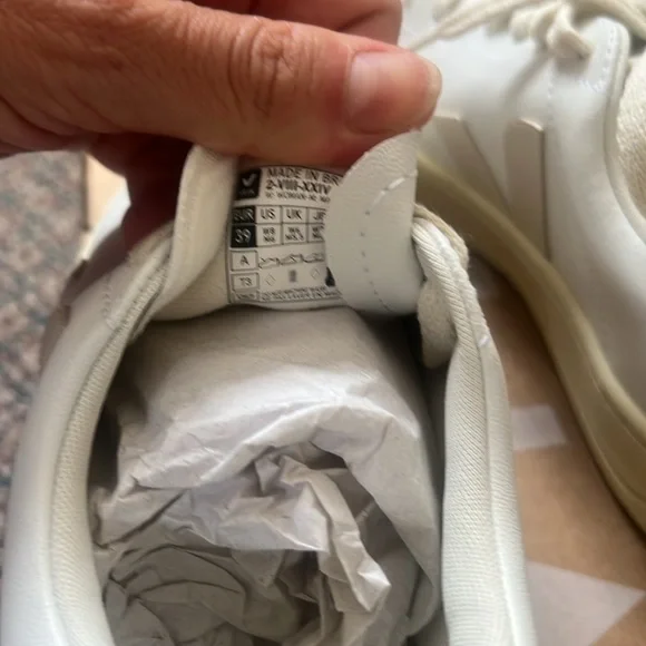 Questions? Leave a comment below!New in boxIs size W 8European size 39Upper: C.W.L.Panels: Coated canvasInsole: Amazonian rubber (10%), bio-based E.V.A. (40%, including 32% sugarcane), recycled E.V.A. (12%), organic cotton (14%) and others (24%)Outsole: Amazonian rubber (40%), mineral silica (23%), recycled rubber (10%), synthetic rubber (11%) and others (16%)Lining: Recycled polyester (100%)Laces: Organic cotton (100%)Made in BrazilC.W.L. stands for Cotton Worked as Leather. This vegan alternative to leather has a similar look and high durability. It is 54% bio-based, made from 100% organic cotton canvas coated with a PU, corn starch, and ricinus
