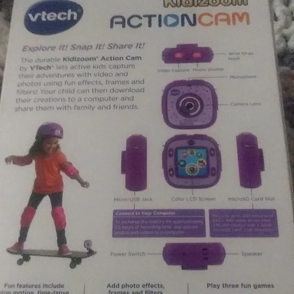 Purple Vtech Kidizoom Action Cam NIB for kids or adults. Great gift for birthday or anytime !! see pics for all details