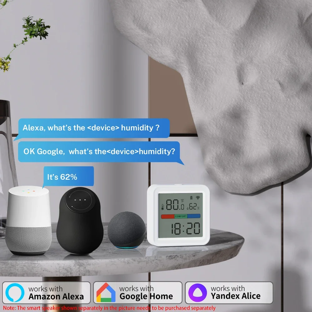 6. Third-party voice support.The sensor supports Amazon Alexa, Google Home Asisstant. You can check the current temperature and humidity by voice.