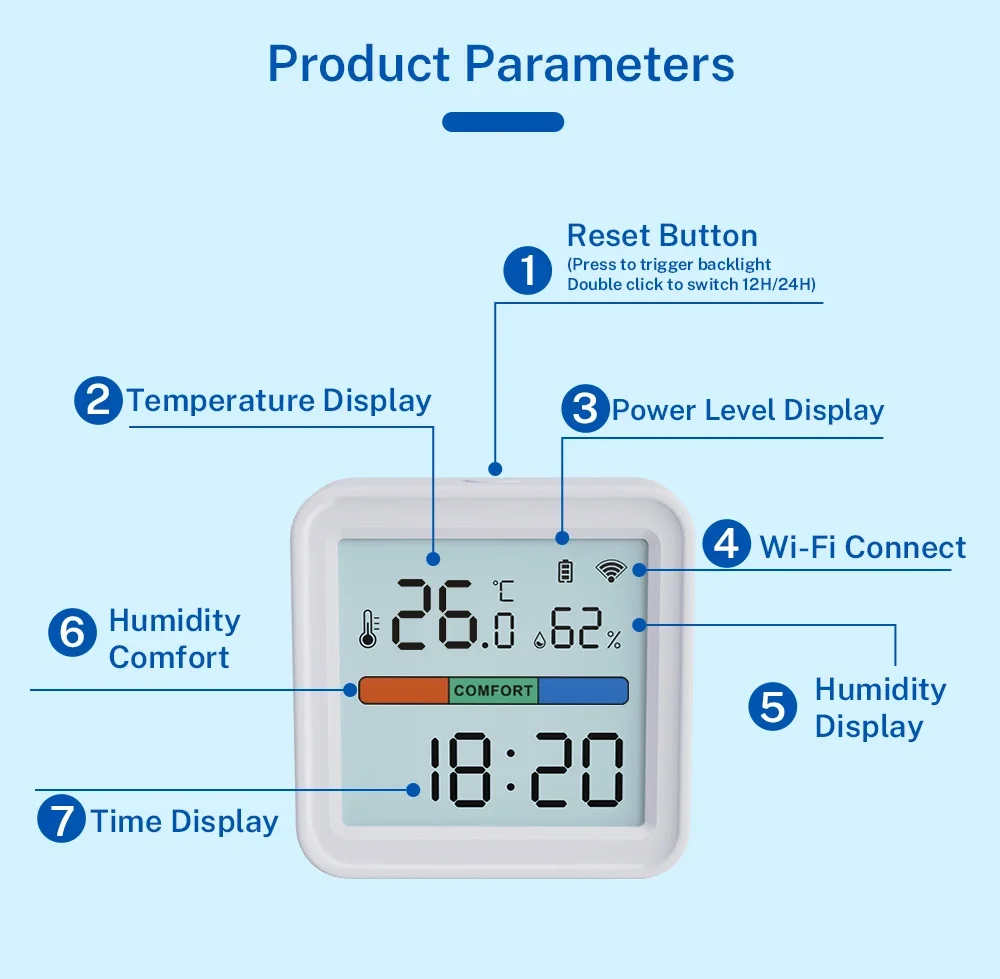 • Backlight Display :The backlight display makes it easy to read the temperature and humidity levels, even in low light conditions.