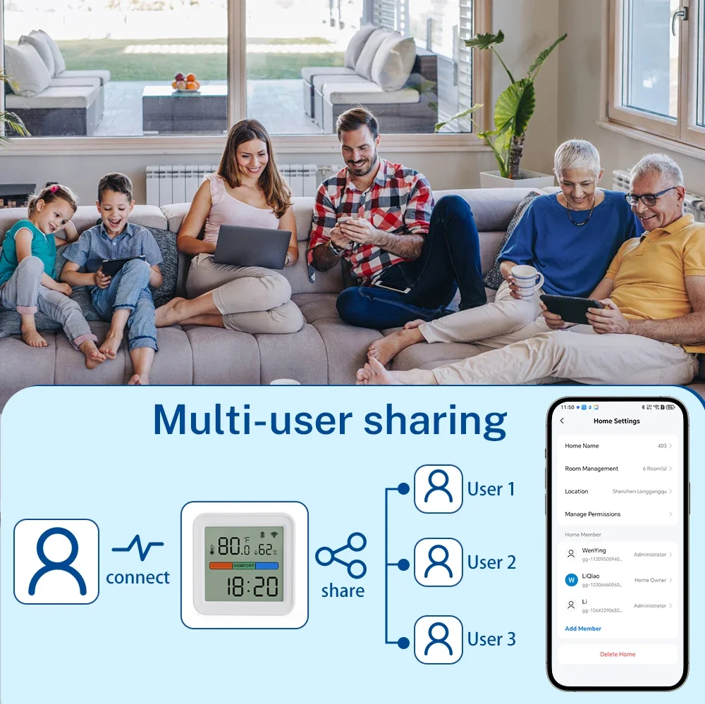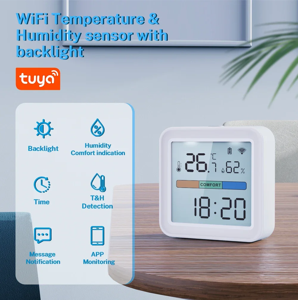 • Wi-Fi Connectivity :Connects to your home Wi-Fi network, allowing you to monitor the temperature and humidity from anywhere using your smartphone.