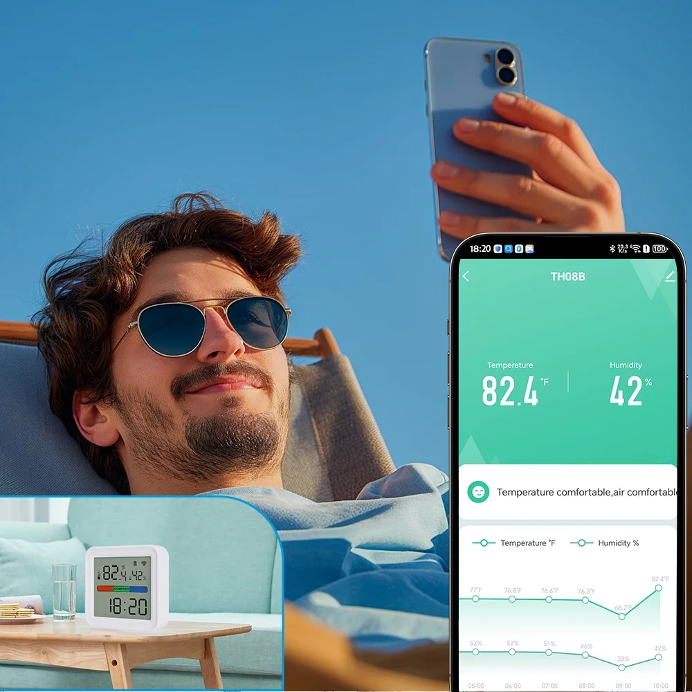 2. APP Remote monitor and recording.The sensor will report when the temperature and humidity. You can view the changes in the value on the APP or display screen.Record the temperature and humidity changes on the APP, and use the graphics to show you.